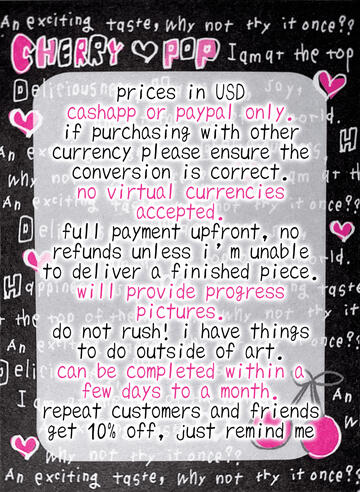 ♡ backgrounds have no set price so discuss with me what you want. if not, default is transparent or patterned